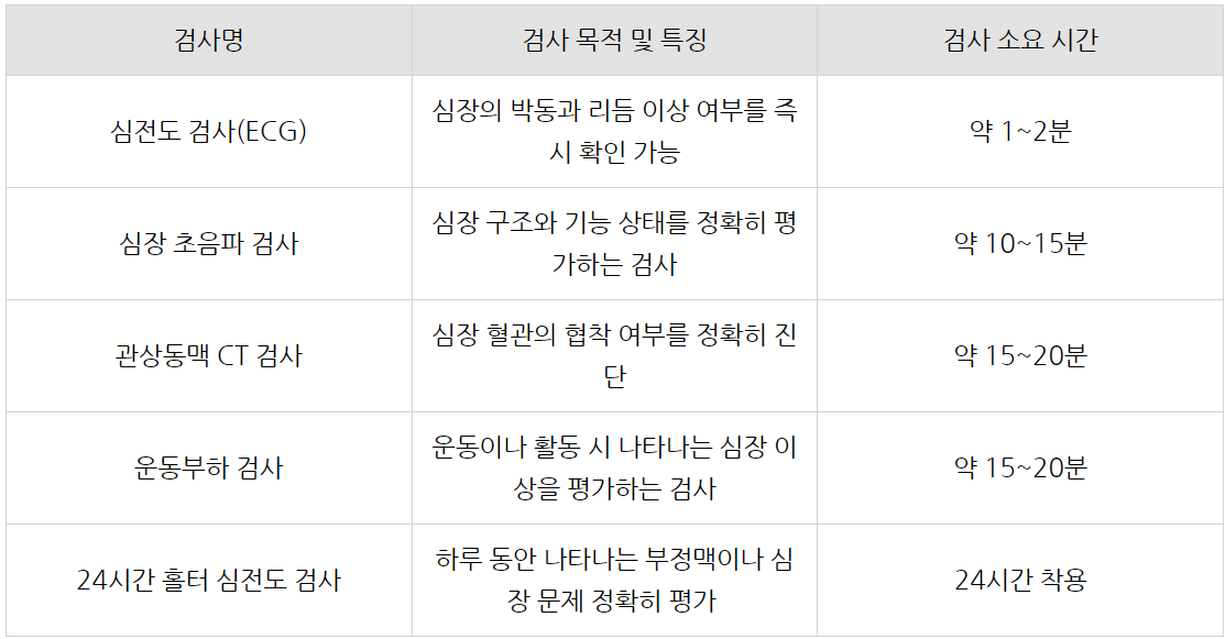 이러한 검사들은 빠르고 정확히 진행되어 실제로 심장 질환 여부를 정확히 파악할 수 있습니다.