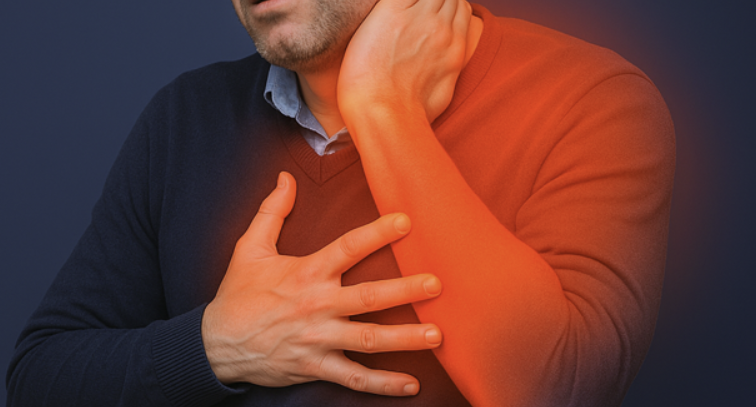 특히 왼쪽 팔, 어깨, 턱, 등까지 통증이 퍼지는 경우 협심증 가능성이 높습니다.