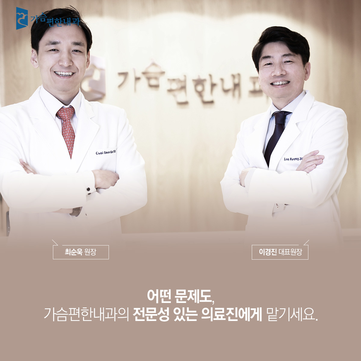 풍부한 진료 경험과 대학병원 출신의 순환기내과 분과전문의 2인이 진료하고 있는 가슴편한내과에서 자세히 안내해 드리도록 하겠습니다.