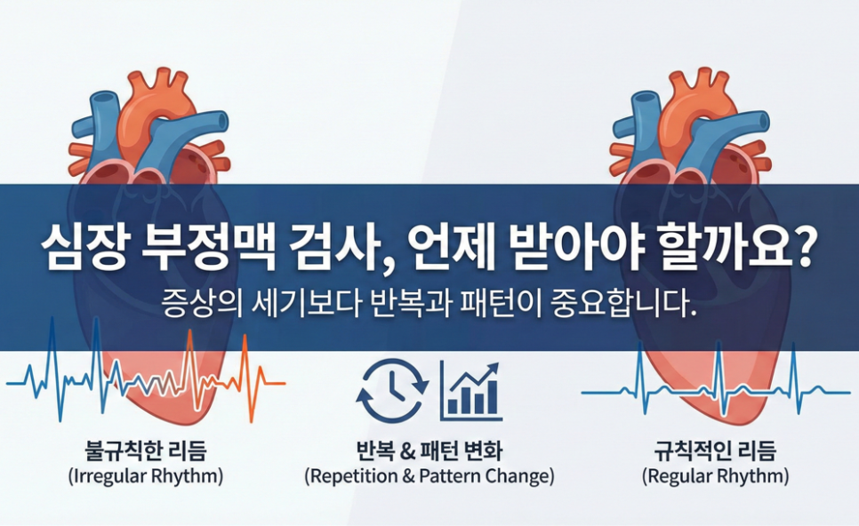 부정맥은 심장에서 발생하는 리듬 이상이기 때문에, 증상이 반복될 경우 심장 부정맥 검사의 관점에서 접근하는 것이 필요합니다.